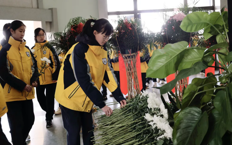 仪式结束后,全体师生手持素菊,依次缓步上前,向总理雕像三鞠躬并敬献鲜花。朵朵白菊,寄托着绵延五十载的深切缅怀,也象征着崇高精神在下一代心中永远绽放。