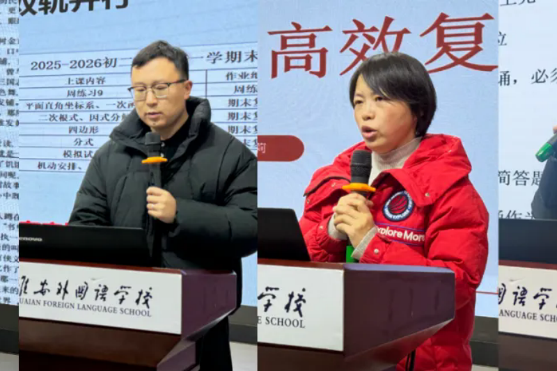 1月12日,淮安外国语学校初一、初二、初三级部相继召开期末备考专项会议,三级联动明方向、定策略、聚合力,全校教师以务实作风、科学方法部署冲刺计划,全力护航学子期末创佳绩。