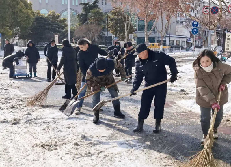 1月19日,淮安市迎来大范围降雪,纷飞的白雪为城市披上银装,却也给主次干道、校园通道等区域带来积雪结冰隐患,严重影响市民与师生出行安全。为响应上级主管部门“除雪保畅”号召,1月20日上午,淮安外国语学校迅速启动应急志愿服务机制,以雪为令、闻雪而动,由校领导带队,总务后勤员工及部分教师代表组成“淮外扫雪小分队”,分赴校外路段与校园区域召开义务扫雪,用实干担当为冬日出行保驾护航。