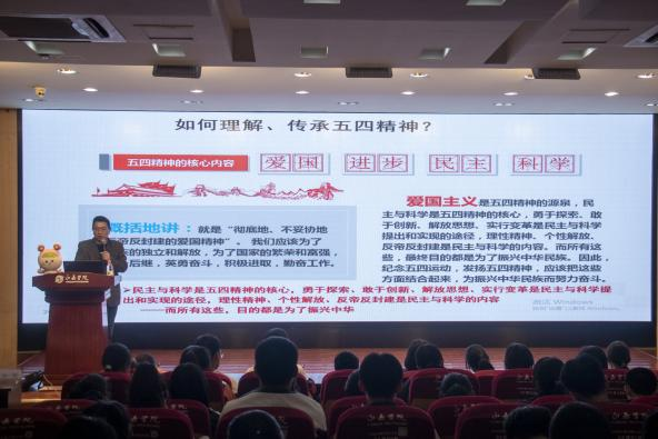 20日晚,祝孔江老师带来团校第三课:《弘扬五四精神,牢记青春使命》。他以提问的方式引出了对中国近代史进程的深刻的讲述,殷切期盼同学们能够传承五四精神,用有限的生命展现无限的热忱。