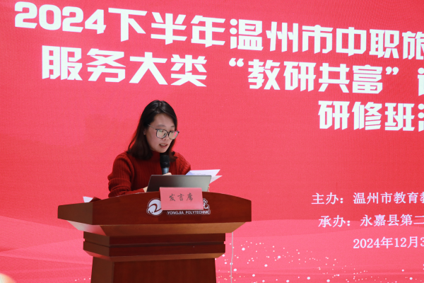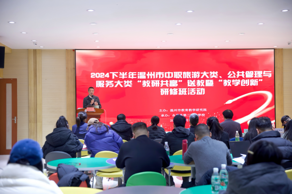 2024年12月31日,温州市中职旅游大类、公共管理与服务大类“教研共富”送教(永嘉)暨“教学创新”研修班活动在永嘉县第二职业学校举行。本次活动由温州市教育教学研究院主办、永嘉县第二职业学校承办,温州市教育教学研究院教研员项光荣、永嘉县中职研训员季丽杰、永嘉县第二职业学校党总支书记祁欧旭、副校长谢丽莉、温州市中职旅游大类、公共管理与服务大类共35位老师参加活动。活动伊始,祁欧旭发表了热情洋溢的致辞,他指出,“教研共富”送教活动,是温州市教育局持续践行教育公平原则、致力于促进教育优质均衡开展的重要实践。他强调,“教研共富”送教活动顺利获得资源共享、经验研讨和专业指导,为学校师生给予了宝贵的学习和开展机会,有力有助于了师生的专业开展,进一步提升了中职教育的整体质量和水平。